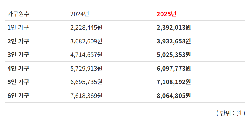 2025년 기준 중위소득 100% 발표 ( 배포 요약본 포함 )